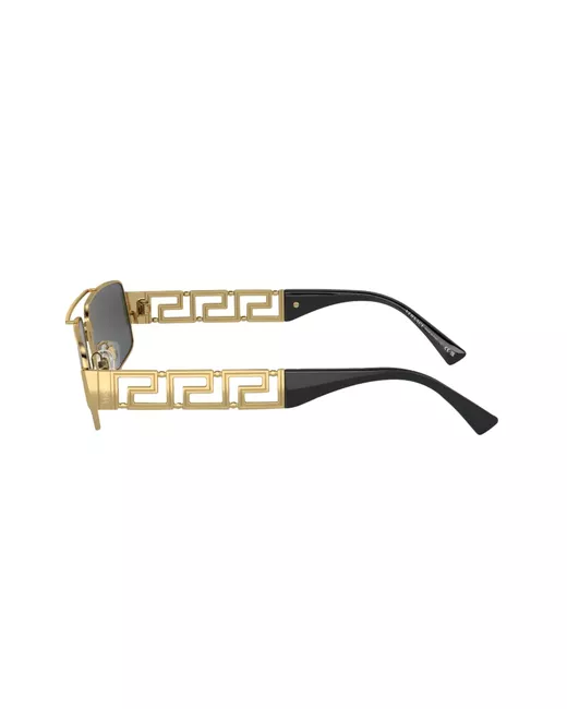 gold-tone metal grey tinted lenses rectangle frame double bridge nose pads signature Greca detailing cut-out detailing logo print at the arm straight arms curved tips These glasses come with a protective case.