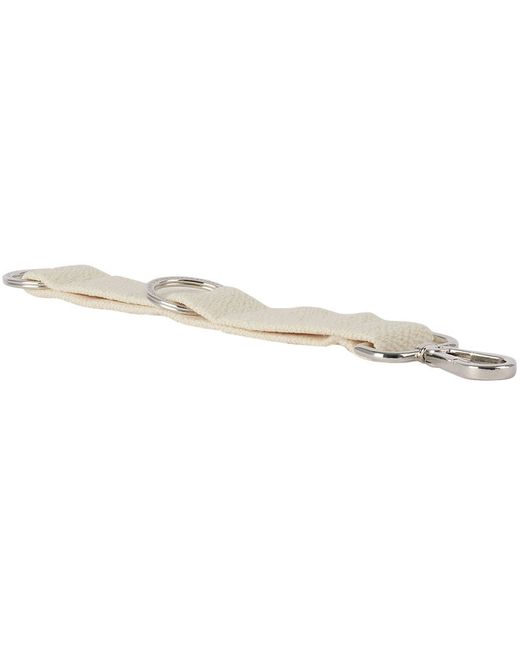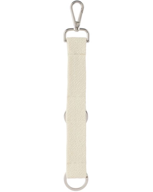 Webbing keychain in off-white. · Lanyard clasp at top · Logo-engraved keyring at face and base · Silver-tone hardware Part of the Kvadrat/Raf Simons Shaker system collection. Supplier color: Off-white