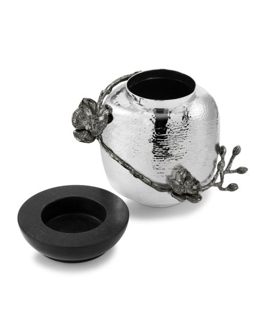 From the Black Orchid Collection. The vase was inspired by the powerful sensuality of orchids and the rich ambiance of haute couture-strikingly simple yet full of the most extreme detail. The collection has an almost gothic feeling-opiated, lush, and smoldering-like the dark, velvety atmosphere of a luxurious evening. In blackened nickel, orchids are even more sublime, like a woman wearing a black velvet gown floating through a great estate or a glassy urban high-rise. The dark atmosphere of the orchids against the hammered metal is like the afterglow of a beautiful evening. Item ships in a dust bag and gift box Stainless steel/black kadappa/black nickelplate Wipe with soft cloth Imported SPECIFICATIONS 6.5"W x 5"H x 6"D Please note: This item ships directly from the vendor and may take up to 10 business days to ship after the order is placed. Please note: This item ships directly from the vendor and may take up to 10 business days to ship after the order is placed. Gifts - Michael Aram > Michael Aram > Saks Fifth Avenue > Barneys. Michael Aram.