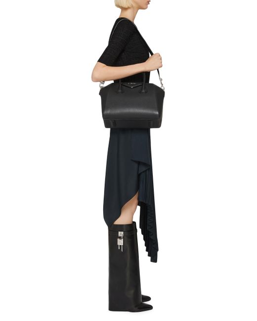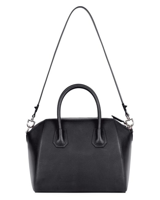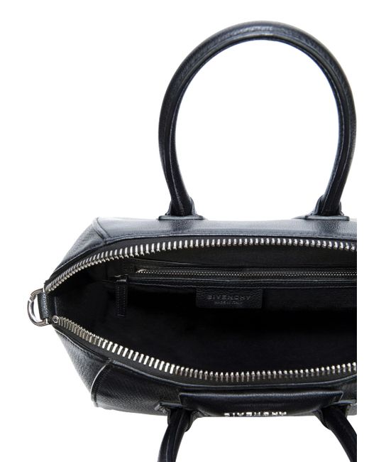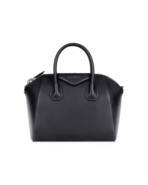 Small Antigona bag in grained leather. Small Antigona bag in black grained leather Trapezoid-shaped handbag with triangular Givenchy patch, oversized zipper, and metal details Adjustable and removable shoulder strap Two flat pockets and one zippered pocket inside 100% goatskin leather Lining: 100% cotton Metal pieces: 100% zamak Dimensions: 11 in x 9.8 in x 5.9 in Made in Italy. Lsd Handbags - Givenchy > Givenchy > Saks Fifth Avenue > Barneys. Givenchy. Color: Black.