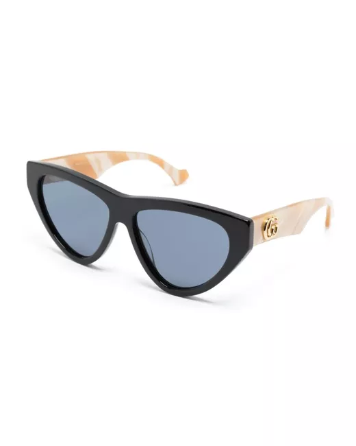 black recycled acetate cat-eye frame tinted lenses straight arms curved tips signature Double G logo These glasses come with a protective case.