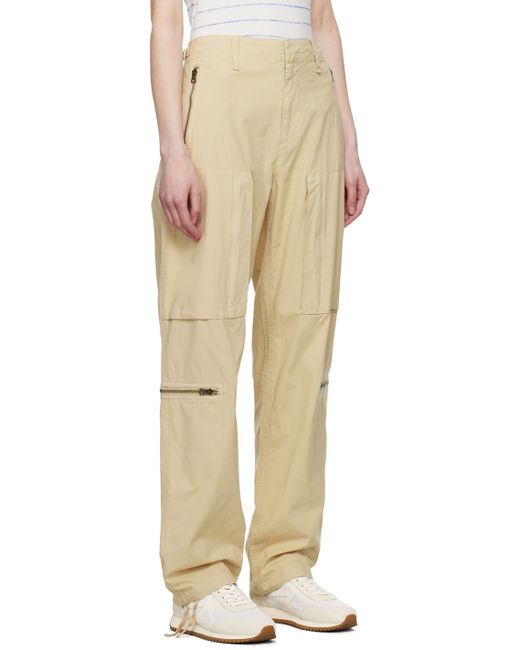 Lightweight overdyed cotton ripstop trousers. · Belt loops · Cinch tabs at waistband · Four-pocket styling · Zip-fly · Self-tie drawstring at cuffs · Zip pockets at outseams Supplier color: Beige