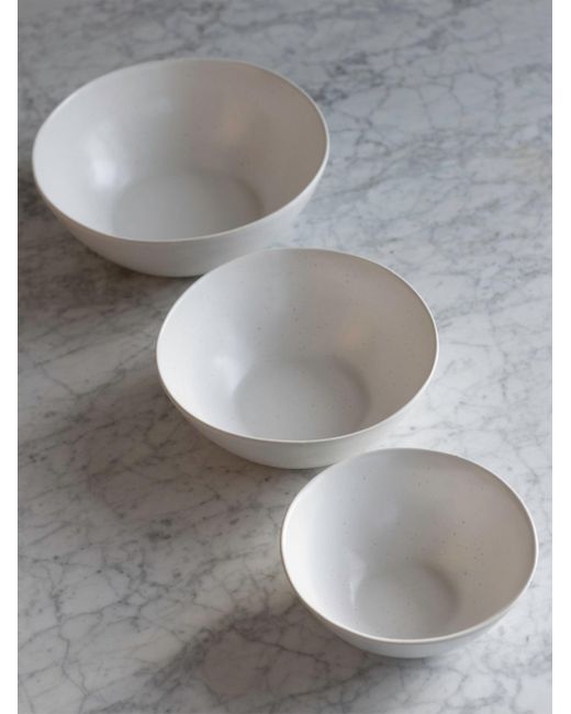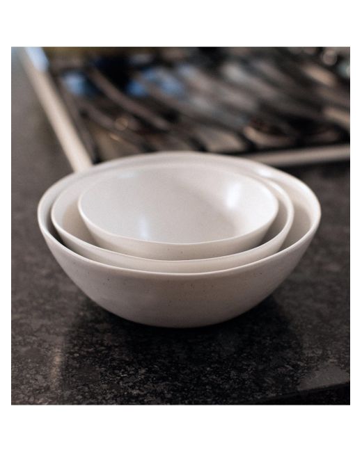 From salads to snacks, this versatile trio is an everyday essential. In three perfect sizes, the bowls nest neatly into each other for sleek storage and double as decor on the table or shelves. Stoneware contains natural flecks that come to the surface during firing and may show through lighter glazes. Slight variations may occur. Each bowl is organically shaped and one of a kind Hand-finished in Portugal Comes in a set of 3 MATERIALS: Artisan crafted stoneware Local Portuguese clay Lead-free semi-matte glaze Designed in Vancouver, crafted in Portugal DIMENSIONS: Small - 7.5 in. diameter; 3 in. diameter; 1.4 lb. each; Holds 30 oz Medium - 9 in. diameter; 3.3 in. height; 2.1 lb. each; Holds 49 oz Large - 10.5 in. diameter; 3.5 in. height; 3.1 lb. each; Holds 119 oz CARE: Our ceramics are durable and easy to care for Dishwasher, microwave, and oven safe up to 232C All semi-matte ceramics are susceptible to superficial marks from your flatware. They can be easily removed with a scouring powder (like Bar Keepers Friend) and our Tawashi Brush. Misc Lsd Dept - Home Leased Mp > Fable > Saks Fifth Avenue > Barneys. Fable. Color: Dove Gray.