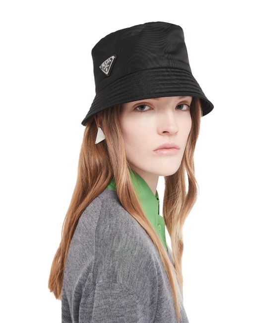 This bucket hat, an iconic accessory of Prada collections, is made of Re-Nylon: regenerated nylon yarn (ECONYL )produced from recycled, purified plastic trash collected in the ocean, fishing nets and textile waste fibers. Enameled metal triangle logo Cotton lining. Lsd Rtw - Prada Rtw > Prada > Saks Fifth Avenue > Barneys. Prada. Color: Black. Size: Medium.