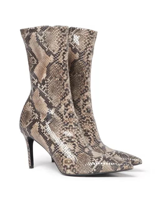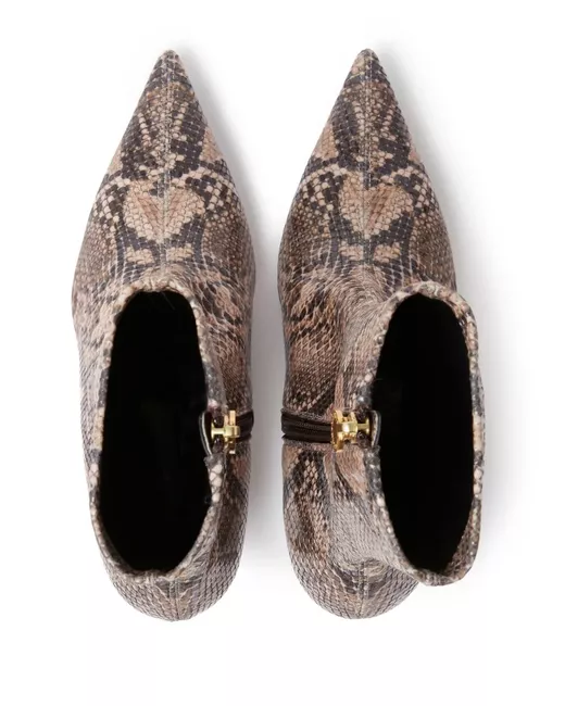 brown recycled polyester blend python print pointed toe side zip fastening branded insole high stiletto heel ankle-length