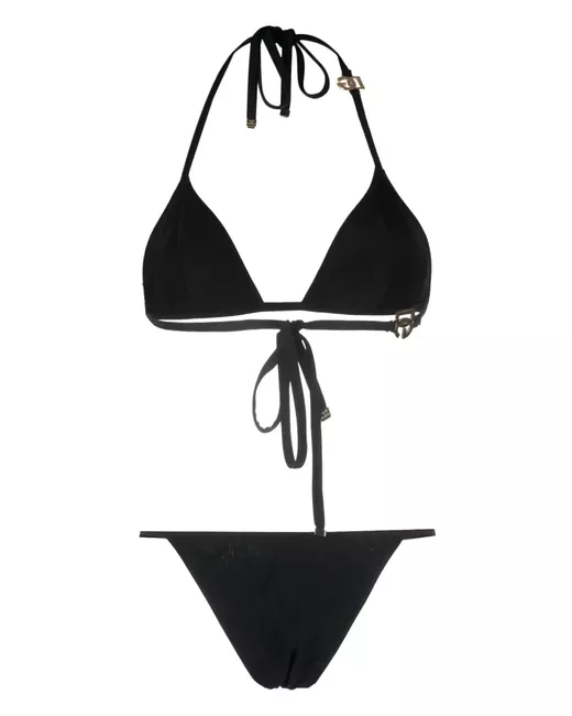 black Top: triangle cup rear tie fastening Bottoms: low-rise slip-on style Be mindful to try on swimwear over your own garments.