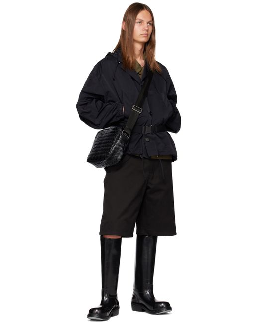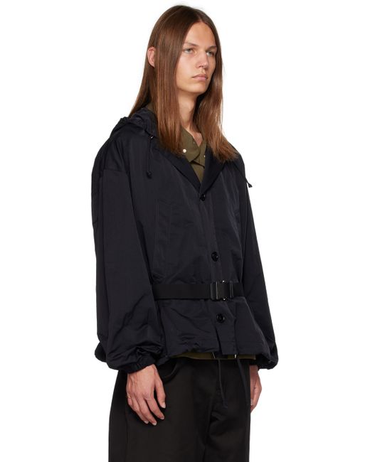 Packable nylon taffeta jacket. Detachable belt-style zip pouch with webbing straps and press-release fastening at back. · Drawstring at hood and hem · Button closure · Welt pockets · Belt loop at side seams · Unlined Supplier color: Black