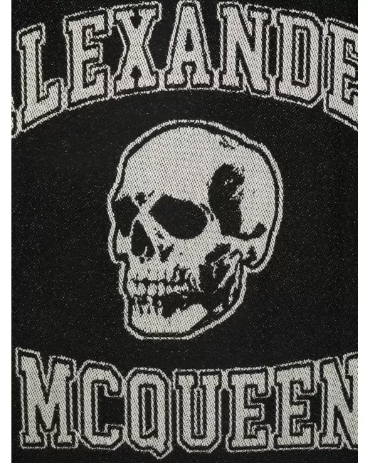 Skull Motif Scarf Black 100 Wool Designer Logo