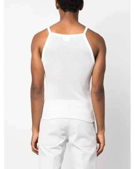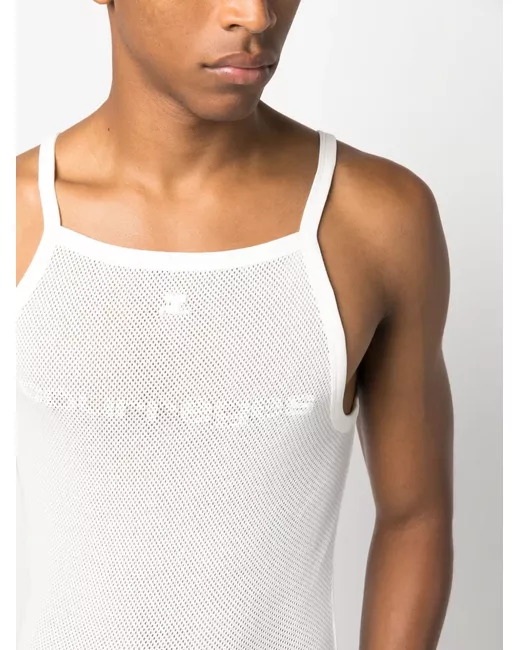 Bianco, cotone, design a rete, applicazione con logo, stampa con logo sul davanti, scollo quadrato, senza maniche e orlo dritto.