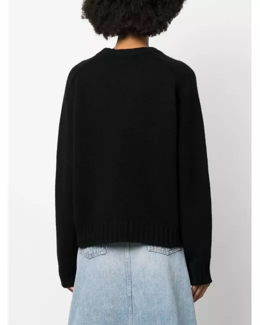 black cashmere knitted construction crew neck long sleeves extra-long sleeves ribbed cuffs and hem