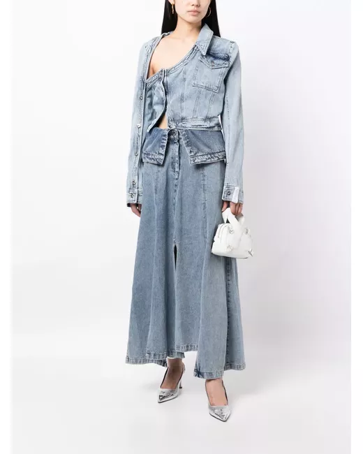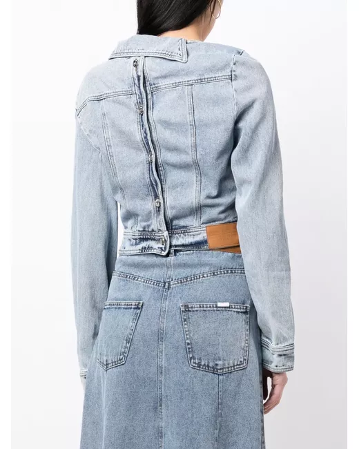 light blue cotton asymmetric neck front button fastening rear button fastening long sleeves chest flap pocket straight hem