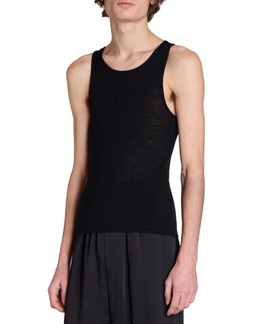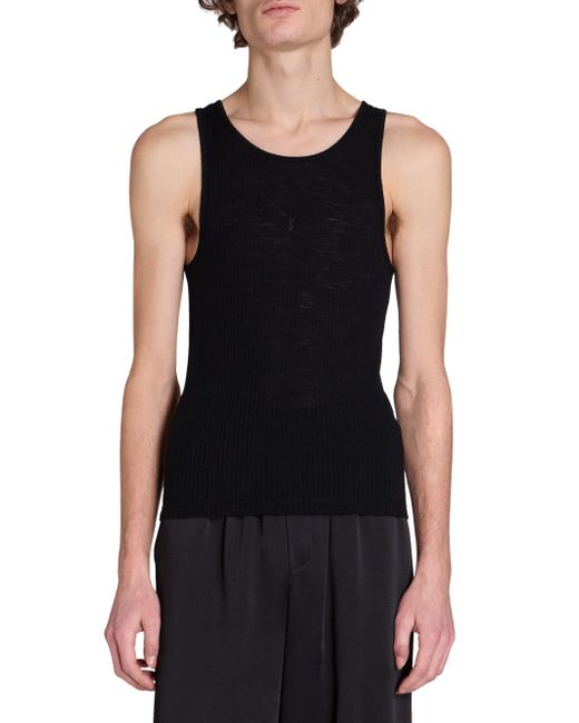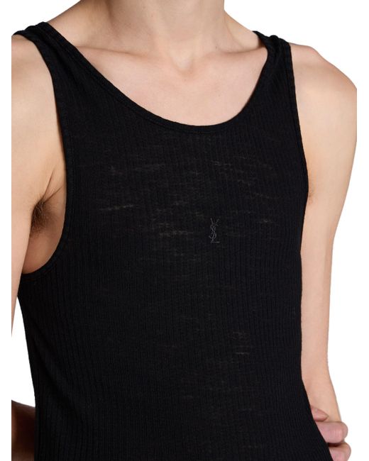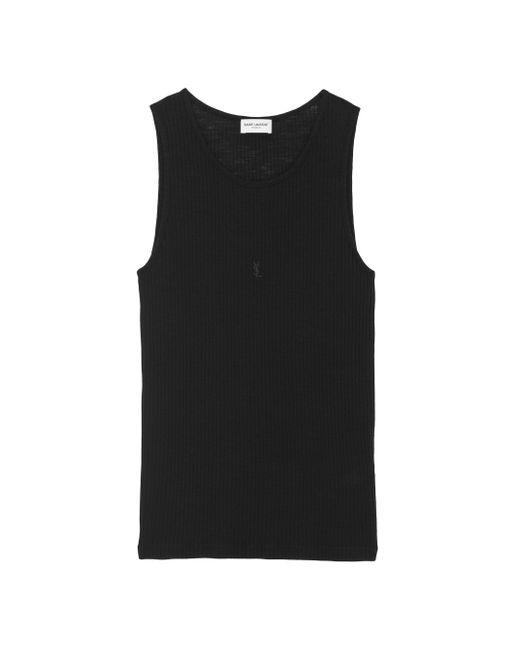 Semi-sheer ribbed tank top with a round scoop neck and Cassandra embroidery on the chest. Round scoop neck Straight hem Made in Italy. Lsd Rtw - Saint Laurent Rtw > Saint Laurent > Saks Fifth Avenue > Barneys. Saint Laurent. Color: Black. Size: XS.