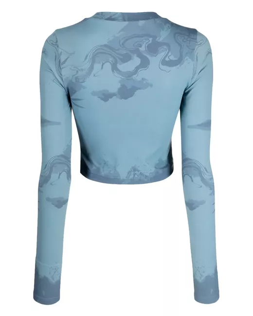light blue stretch-design abstract pattern print crew neck long sleeves straight hem