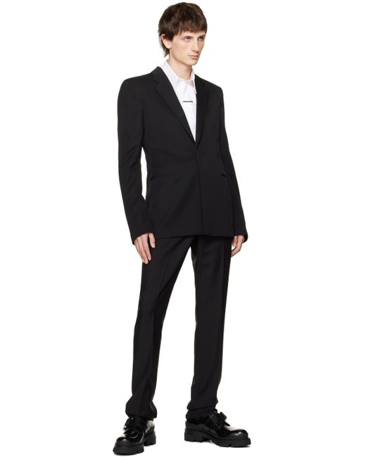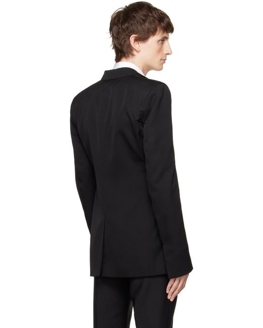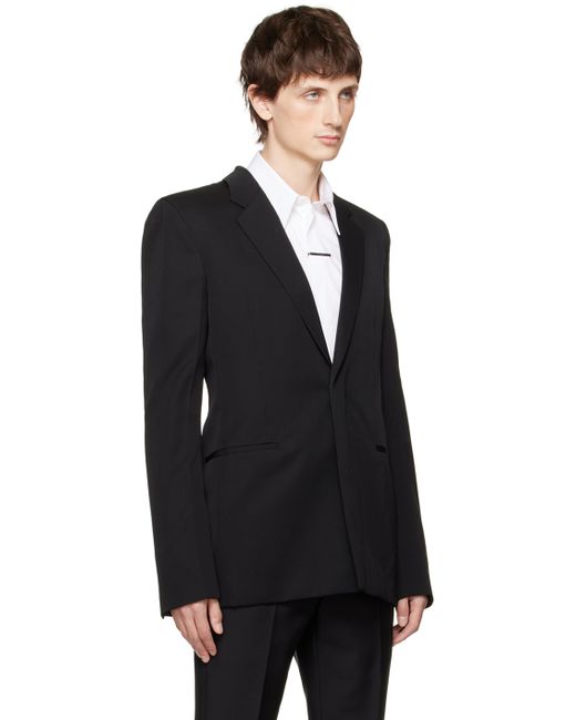 Wool gabardine blazer. · Notched lapel · Concealed single-button closure · Darts at waist · Welt pockets · Padded shoulders · Central vent at back hem · Welt pockets at interior · Full logo-woven cupro satin lining Supplier color: Black