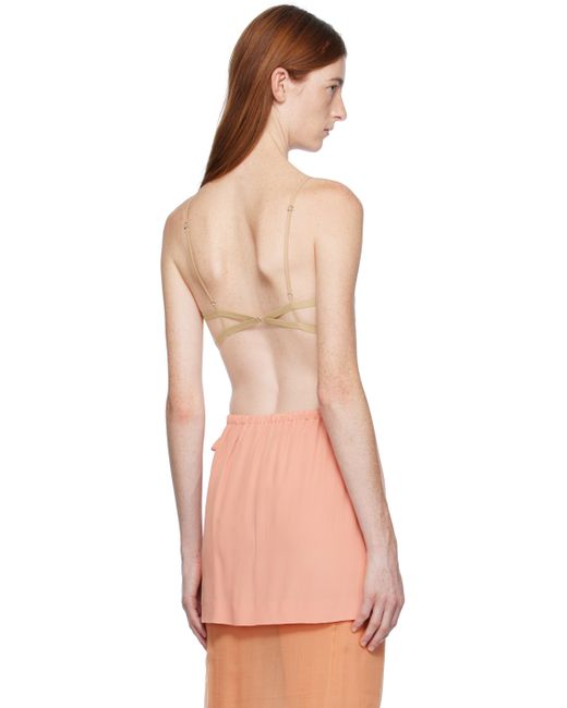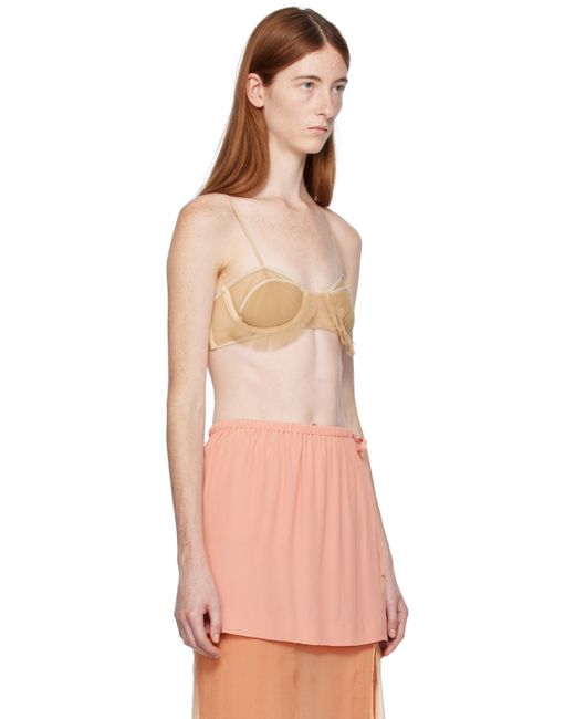 Semi-sheer polyester tulle bra. · Square neck · Adjustable shoulder straps · Hook-eye fastening at back · Partial stretch silk-blend crepe lining Supplier color: Beige