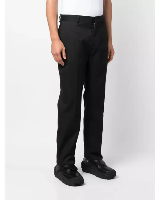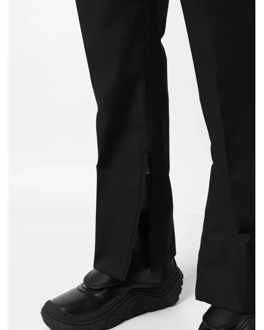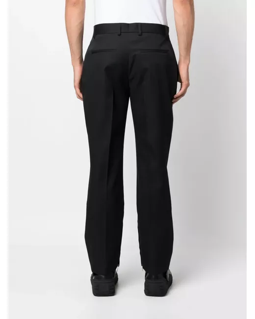 black virgin wool belt loops concealed front fastening two rear welt pockets full lining straight leg