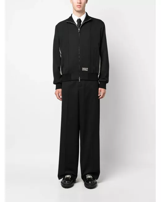 black seam detailing side stripe detailing embroidered logo to the front ribbed band collar front zip fastening long sleeves ribbed cuffs and hem two side welt pockets straight hem