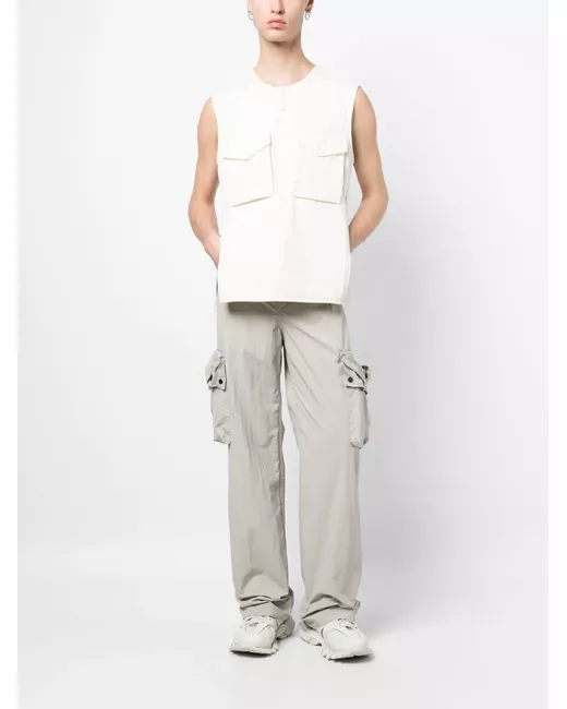 chalk white cotton ripstop texture wide leg belt loops concealed fly and button fastening two side cargo pockets two side slash pockets two rear patch pockets