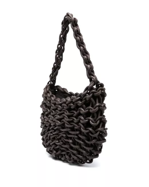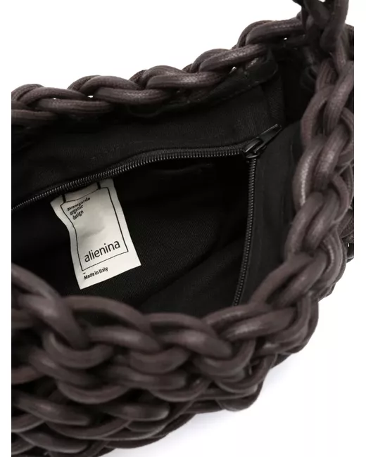 Marrone cedro, cotone, finitura con rivestimento, design intrecciato, applicazione interna con logo, chiusura superiore con zip, due tracolle intrecciate e scomparto unico. . .