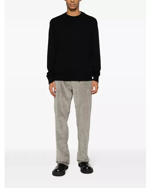 black merino wool knitted construction ribbed-knit edge crew neck long sleeves ribbed cuffs and hem straight hem