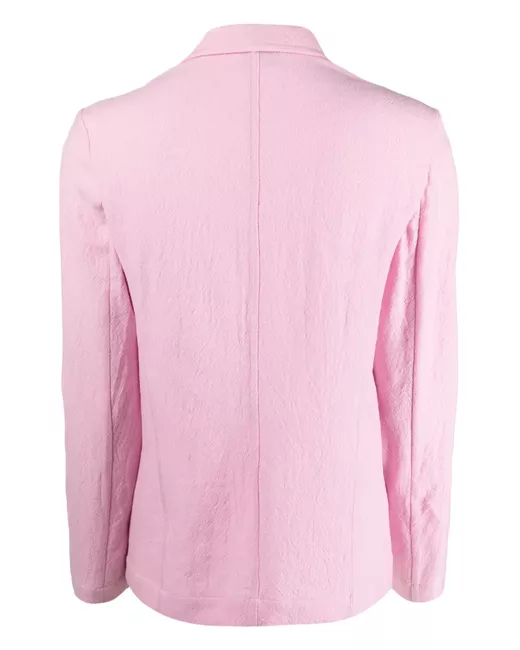 bubblegum pink virgin wool notched collar front button fastening long sleeves two front jetted pockets straight hem