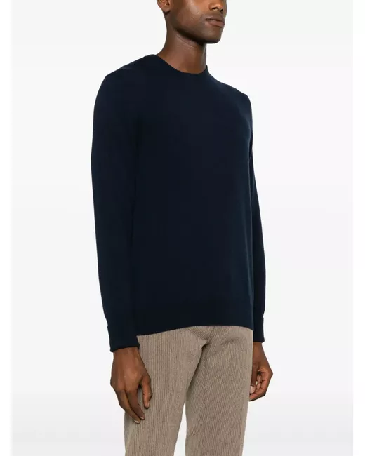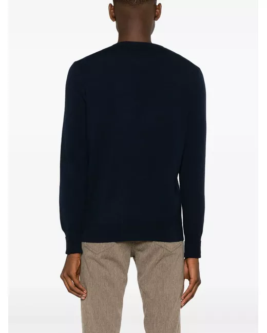 navy blue cashmere knitted construction crew neck long sleeves ribbed cuffs and hem