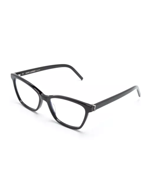 black acetate rectangle frame clear lenses signature YSL logo plaque straight arms curved tips All glasses from FARFETCH are sold as non-prescription frames. These glasses come with a protective case.
