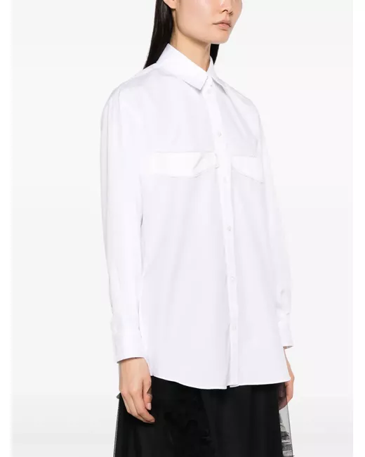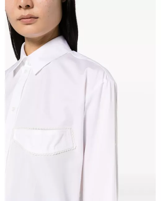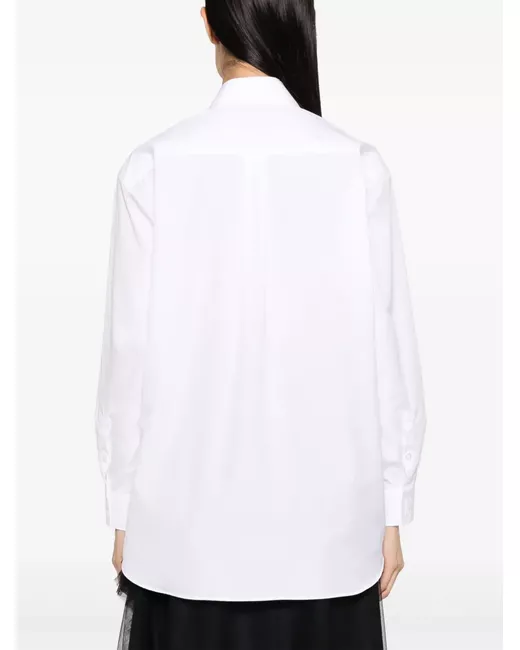 Pearly-Collar Draped-Sleeve Cotton Button-Down Shirt