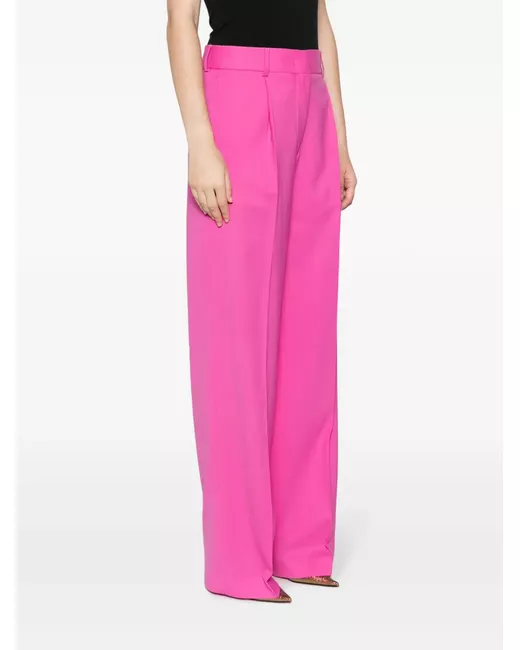 dark pink virgin wool blend tailored design gabardine weave pleat detailing mid-rise belt loops straight leg two side slit pockets two rear button-fastening jetted pockets straight hem