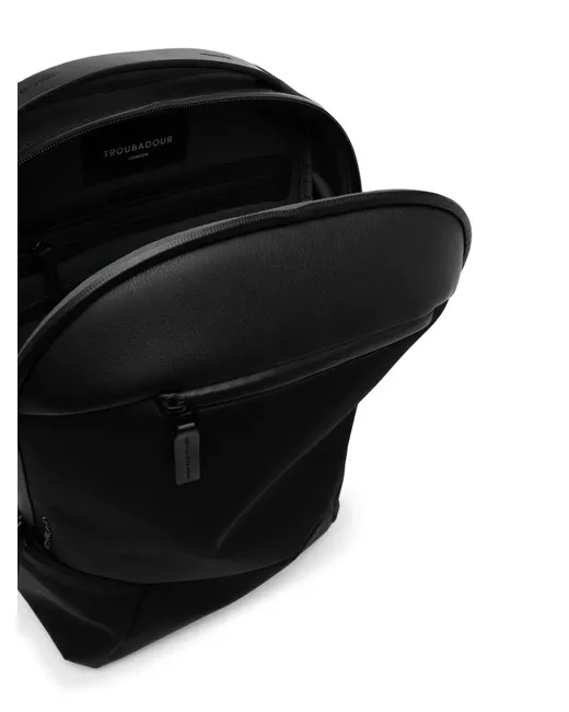 black recycled polyester waterproof panelled design silver-tone logo lettering embossed logo to the rear logo-embossed strap single flat top handle two padded adjustable shoulder straps all-around zip fastening front zip-fastening pocket slip pockets to the sides main compartment internal zip-fastening pocket