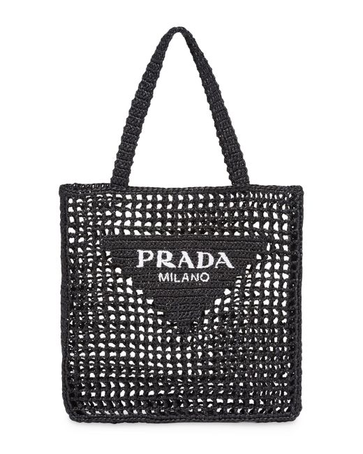 This tote bag with a soft, deconstructed design is made of raffia, a material of natural origin imbued with a summery mood. A new interpretation of the emblematic Prada triangle decorates the front and is embellished with the embroidered lettering logo at the center. Raffia handles Embroidered lettering logo on the front Unlined interior Imported This product is not eligible for extended holiday returns SIZE 14.1'' W x 14.9'' H x 1.1'' L. Lsd Handbags - Prada Handbags Access > Prada > Saks Fifth Avenue > Barneys. Prada. Color: Black.