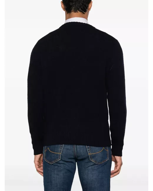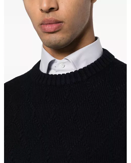 navy blue merino wool knitted construction crew neck long sleeves ribbed cuffs and hem