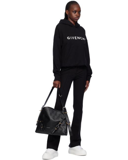 Grained calfskin shoulder bag in black. · Detachable pin-buckle shoulder strap · Silver-tone logo stamp at face · Adjustable pin-buckle straps at face · Open throat · Zip pocket at interior · Canvas lining · Logo-engraved gold- and silver-tone hardware · H12.5 x W15.5 x D2 Supplier color: Black