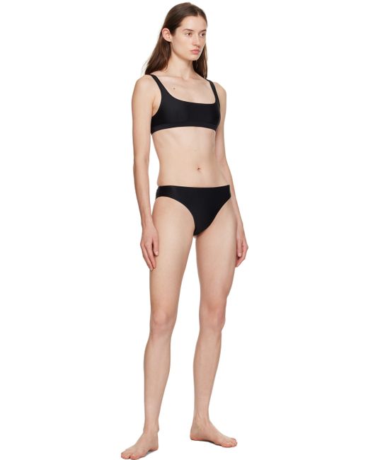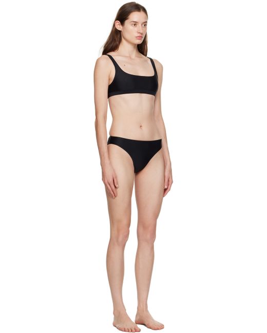 Stretch nylon jersey bikini top. · Square neck · Fixed shoulder straps · Hook-eye fastening at back · Full stretch jersey lining Stretch nylon jersey bikini bottom. · High-cut · Full stretch jersey lining Supplier color: Black