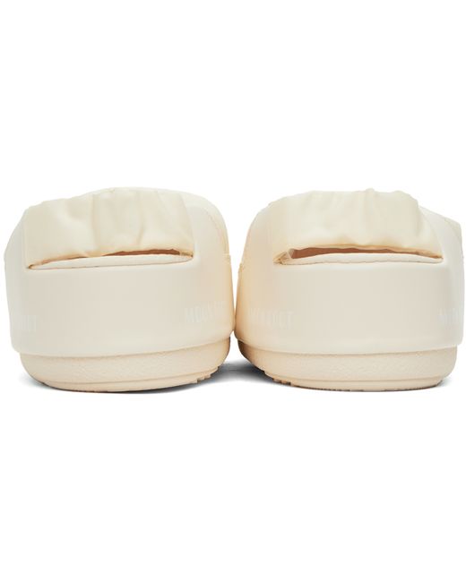 Insulated quilted water-repellent nylon canvas slippers in off-white. · Grained faux-leather trim throughout · Elasticized slingback strap · Logo printed at sides · Jersey lining · Crepe rubber midsole · Treaded rubber sole Supplier color: Cream