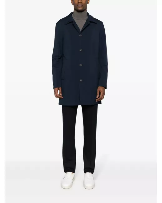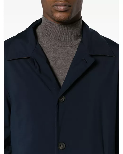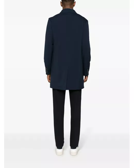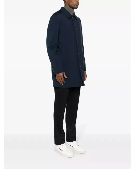 blu navy design imbottito resistente all'acqua antivento colletto a contrasto colletto alla francese chiusura frontale con bottoni maniche lunghe polsini con bottone due tasche a filetto laterali fodera integrale tasca interna con zip tasca interna applicata spacco centrale posteriore orlo dritto