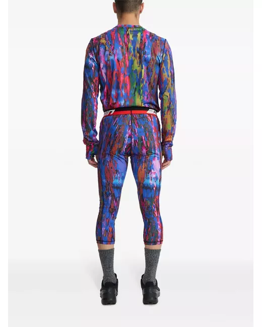 royal blue/multicolour abstract camouflage print cut-out detailing contrast stitching crew neck long sleeves thumb slots straight hem