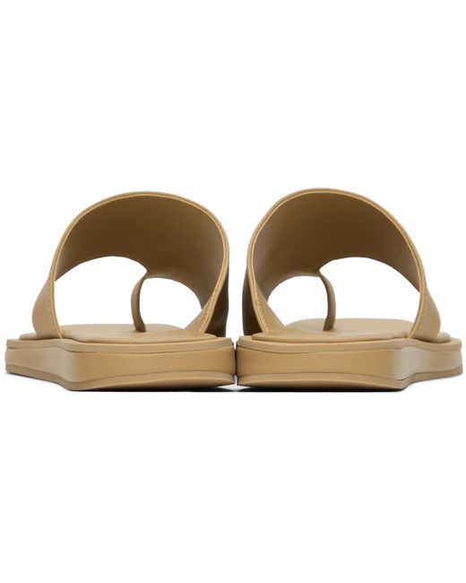 Nappa sheepskin flat sandals in beige. · Open square toe · Thong-style strap at vamp · Rubber sole Supplier color: Beige