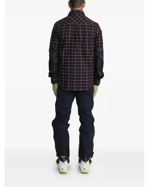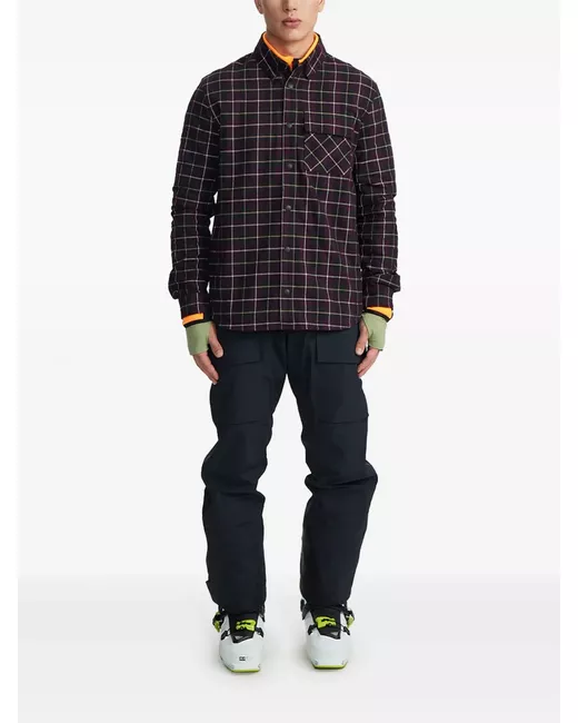 marrone/multicolore misto cotone effetto pettinato motivo a quadri tartan colletto classico chiusura frontale con bottoni a pressione maniche lunghe polsini con bottoni a pressione toppe sul gomito tasca sul petto con patta orlo curvo