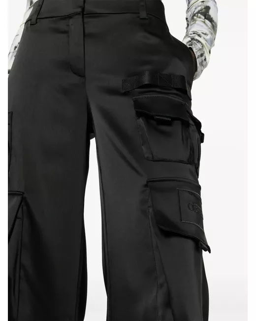 nero finitura satinata dettaglio cinghia passanti chiusura frontale nascosta due tasche con inserti tasche cargo due tasche posteriori a filetto taglio straight fodera in cotone