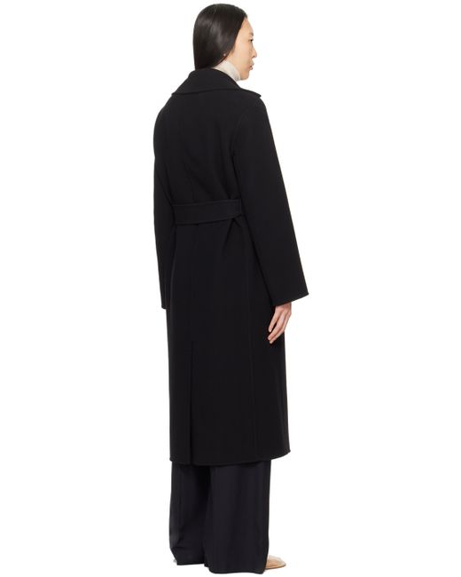 Wool-blend melton coat. · Notched lapel · Open front · Detachable self-tie belt · Seam pockets · Central vent at back hem · Unlined Supplier color: Black