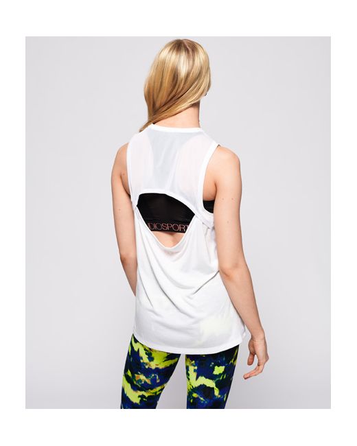 Superdry women's active studio luxe vest. Get a sweat on in style with the studio luxe vest, incredibly lightweight and crafted with our softest fabric yet. Designed with moisture wicking technology, this vest will keep you comfortable and cool for the most intense workouts. It features a high cut neckline, the Superdry Sport logo across the chest, mesh panelling down each side seam and a mesh back with cut out detailing to show off your hard work. Complement this vest with a pair of our high tech leggings to complete the look. Relaxed: A classic fit. Not too slim, not too tight - no distractions here