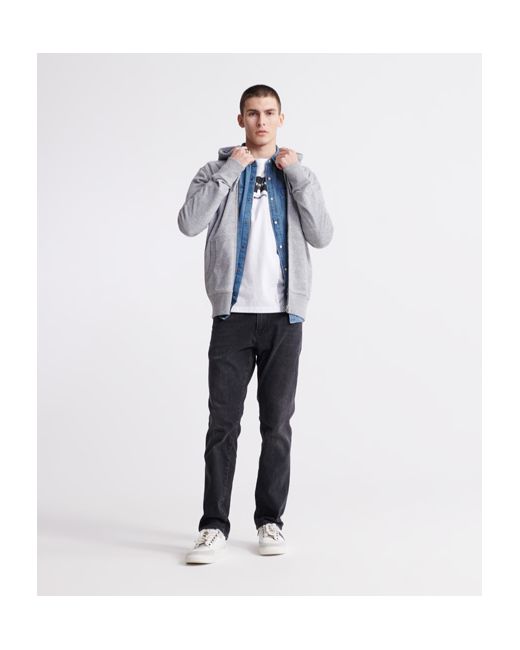 Superdry men's Collective loopback zip hoodie. This hoodie features a zip fastening, drawstring hood, ribbed cuffs and hem and two front pockets. Complete with a Superdry logo badge on the chest and Superdry logo tab on one side seam. The Collective zip hoodie is perfect for layering up this season with jeans and trainers to complete the look. Slim fit - designed to fit closer to the body for a more tailored look