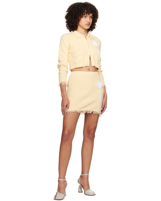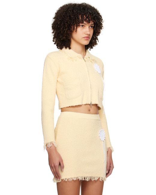 Brushed rib knit cotton-blend sweater. Frayed edges throughout. · Spread collar · Two-way zip closure · Crocheted graphic appliqué at chest · Patch pockets · Dropped shoulders Supplier color: Yellow