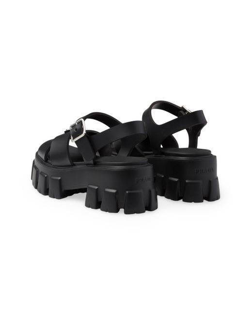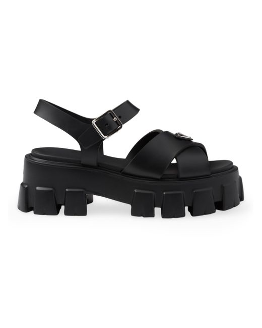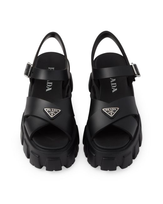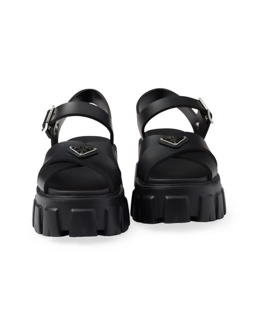 These rubber sandals with sporty touches and contemporary details are an emblem of Prada's unconventional and dual soul. The style characterized by the distinctive Monolith sole is completed by the iconic signature of the enameled metal triangle logo. Upper with metal buckle Enameled metal triangle logo Rubber sole: 55mm / 2.1'' Lug sole Imported. Lsd Rtw - Prada Rtw > Prada > Saks Fifth Avenue > Barneys. Prada. Color: Black. Size: 8.