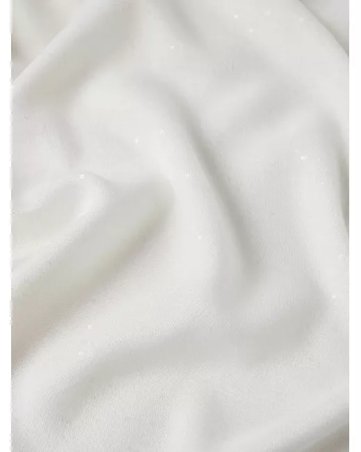Sciarpa oversize con frange di colore bianco in cashmere misto cotone di Brunello Cucinelli. Modello con bordi sfrangiati e vestibilità oversize.