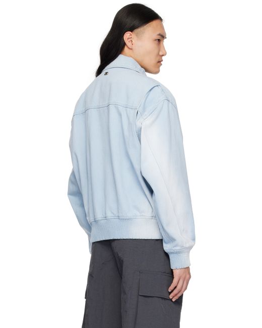 Non-stretch denim jacket. · Spread collar · Press-stud closure · Welt pockets · Elasticized hem and cuffs · Fading at sides and sleeves · Logo hardware at back collar · Pleat at back armscyes · Patch pockets at interior · Logo-engraved silver-tone hardware Supplier color: Blue