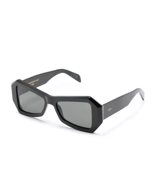 jet black acetate logo-engraved arm gold-tone hardware geometric frame grey tinted lenses raised bridge oversize arms curved tips These glasses come with a protective case.