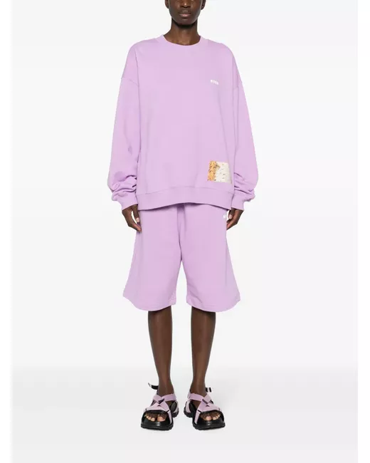 lilac purple organic cotton logo print at the leg drawstring fastening waist two side inset pockets rear patch pocket straight hem When buying this unisex item, keep in mind that it is graded in standard men's sizing
