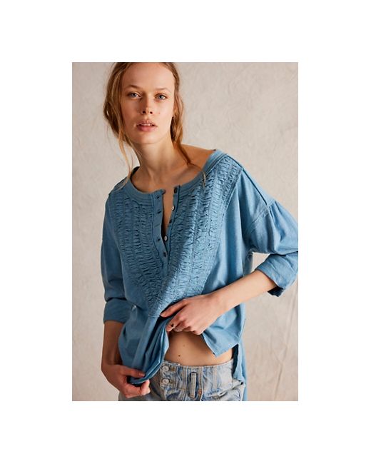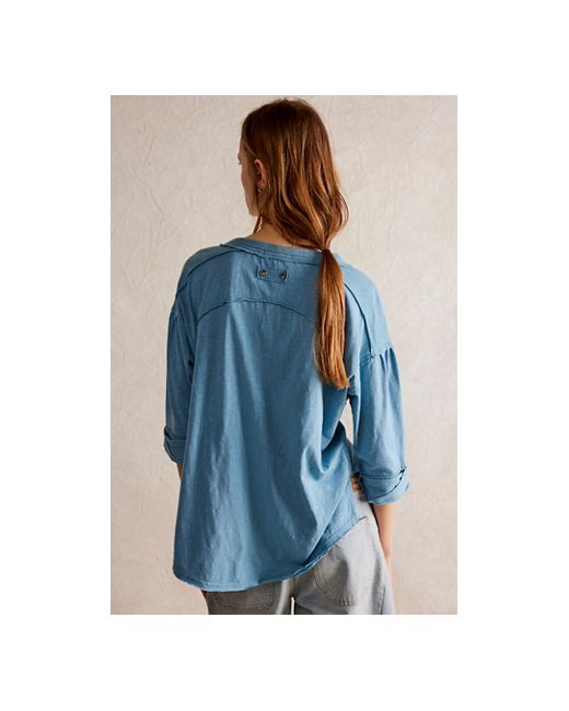 Made for everyday, this long-sleeve from our We The Free collection is featured in a soft cotton fabrication and slouchy, relaxed fit with shirred detailing and exposed seams. **Fit:** Relaxed fit, classic cut **Features:** Soft cotton fabrication, scoop-neckline, shirred detailing with button-front closures, drop-shoulder sleeves with rolled cuffs, exposed seams, raw trim **Why We ❤ It:** This timeless tee pairs perfectly with all your favorite wardrobe staples. We The Free Redone Tee at Free People in Adriatic Sea, Size: XS